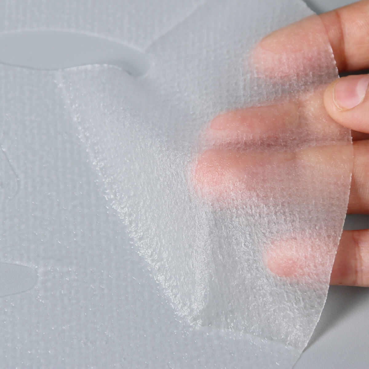 Ice grid pattern + diamond-like cubic fiber structure, with liquid-carrying grooves for precise skin care; swells into jelly-like gel texture when absorbing liquid, smooth and translucent.